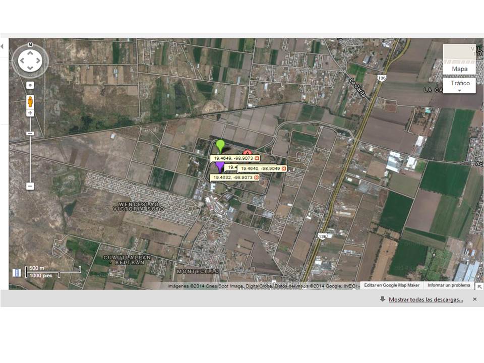 - Con la sesión iniciada en Google Maps intenta geo-ubicar (determinar las coordenadas centrales aproximadas) el AICM y los aeropuertos cercanos (Puebla, Cuernavaca, Toluca y Sta. Lucía). Este dato es necesario para establecer mejores estrategias de contingencia dentro del Valle de México y valles vecinos. Guíate con la figura siguiente: