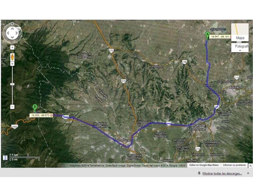 Ilustra la ruta que tomarías para llegar a la laguna de Atlangatepec, Tlaxcala desde la localidad de Río Frío.