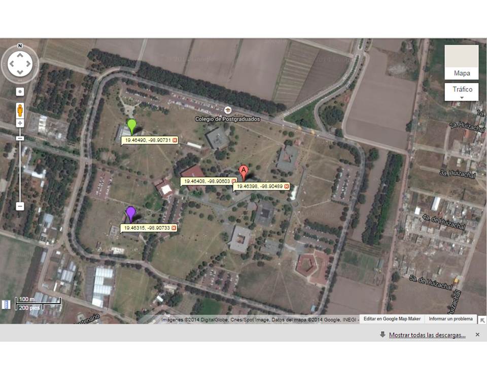 - Ilumina puntos en los edificios de Edafología, Cómputo, Biblioteca y Aulas (1 pt/edif.), para calcular distancias entre ellos.