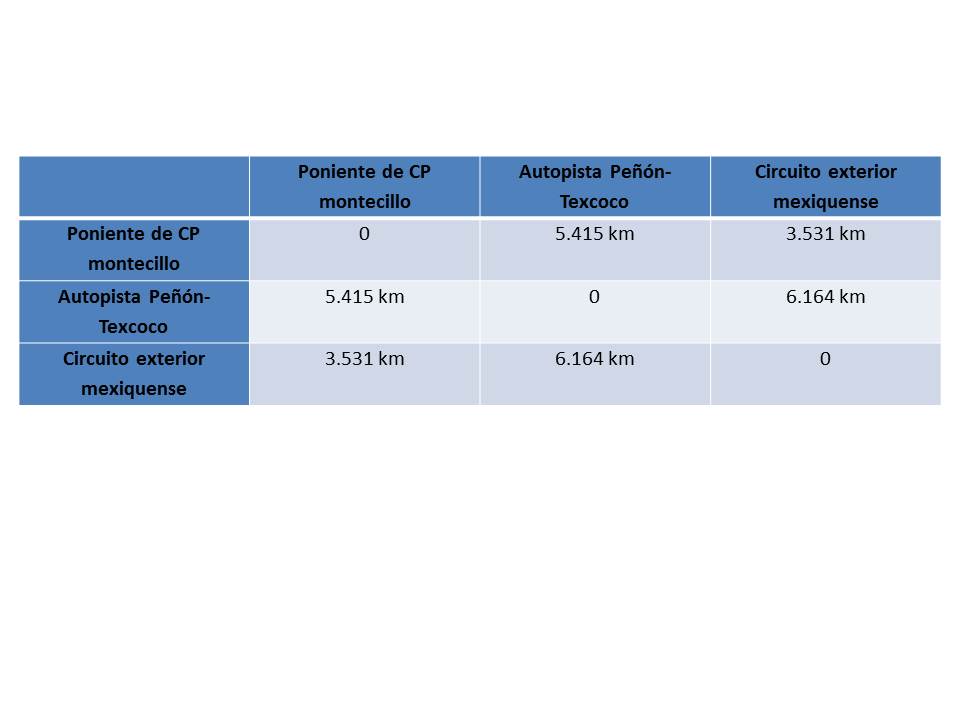 - A partir del tercer caso del ejercicio anterior, determina las distancias más cortas del extremo poniente del campus a la autopista Texcoco-Peñón y el Circuito Exterior Mexiquense.